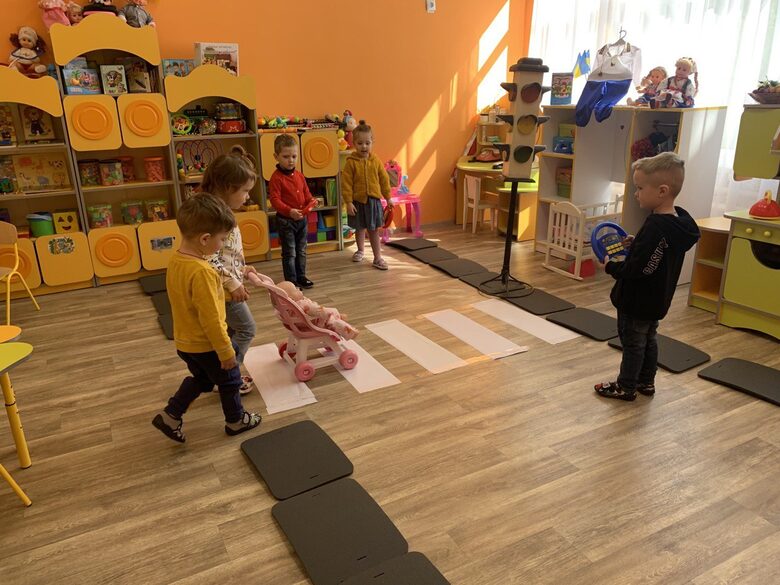 Важливу увагу приділяю правилам дорожнього руху. На інсценізованій проїжджій частині діти вправлялися правильно переходити дорогу по "пішохідному переходу" (молодший вік), розпізнавати сигнали світлофора, звертати увагу на дорожні знаки та поводитися уважно й відповідально як пішоходи.